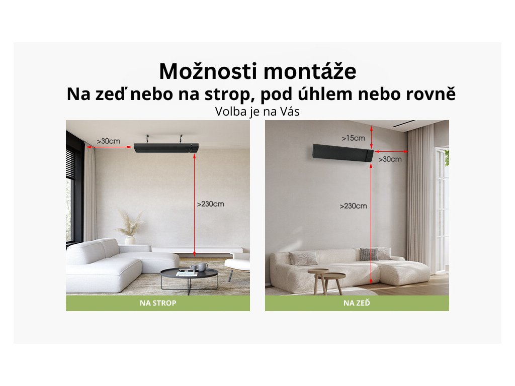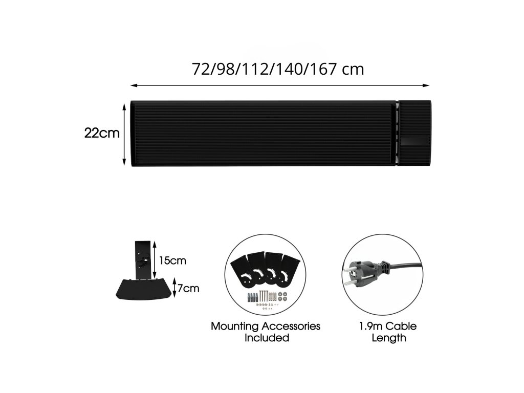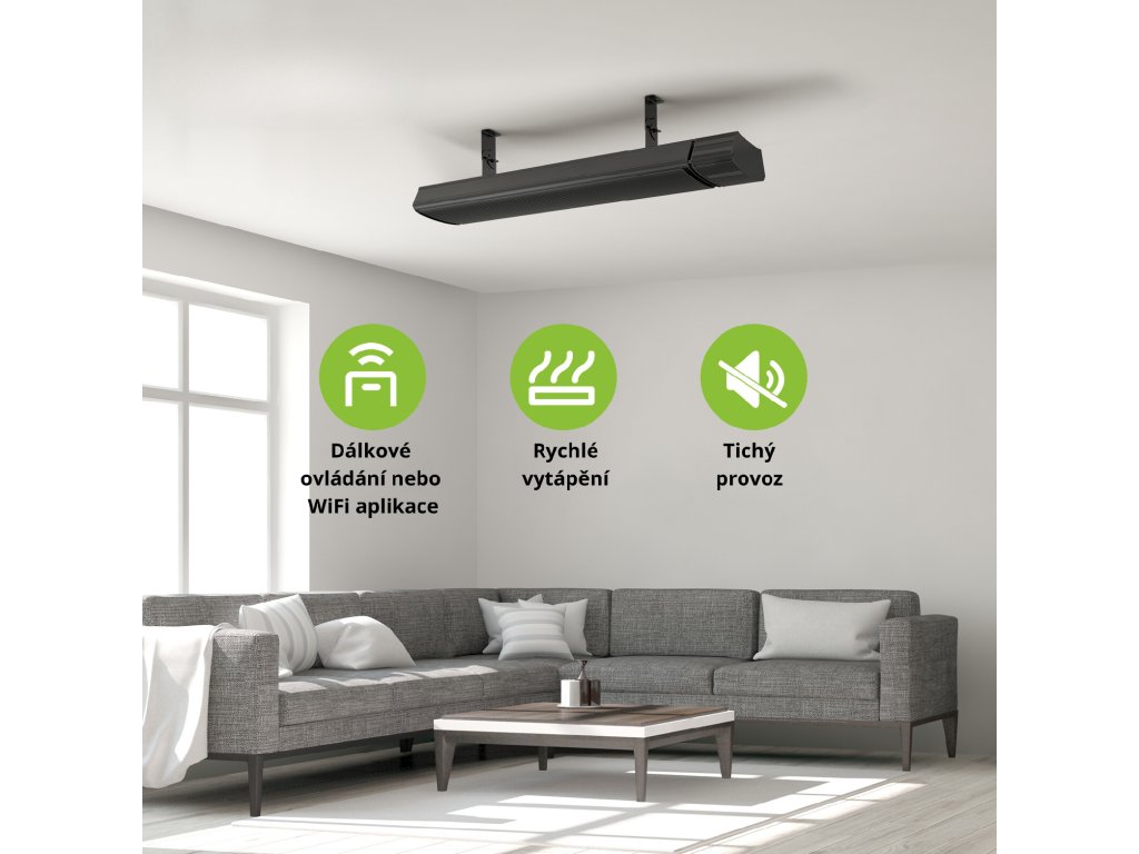 INFRABAR 1500 W poskytuje okamžité a rovnoměrné teplo bez hluku a víření vzduchu. Díky robustní konstrukci je ideální pro vytápění domácností, teras, restaurací i komerčních prostor. Lze jej snadno upevnit na stěnu nebo strop, čímž efektivně pokrývá velkou plochu. Ovládání přes dálkový ovladač nebo mobilní aplikaci zajišťuje maximální komfort a flexibilitu.