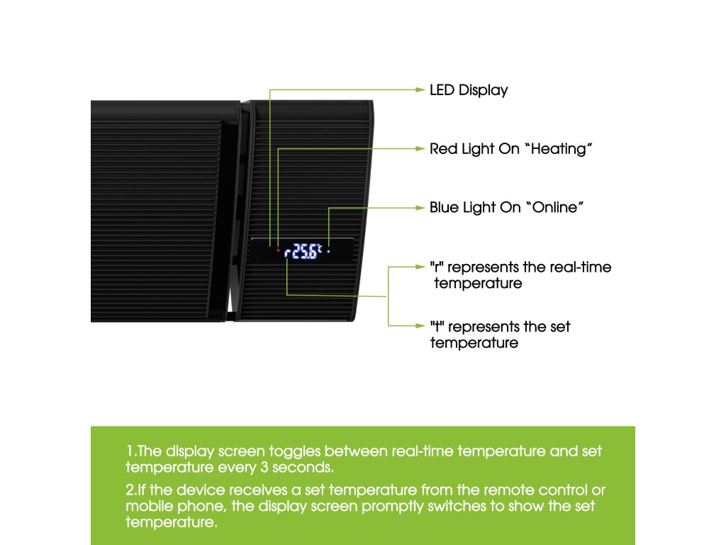 Tento model infračerveného topného panelu je vybaven moderním vestavěným termostatem 2v1, který nabízí pokročilé možnosti ovládání. Díky integrované Wi-Fi lze panel snadno propojit s aplikací SMART LIFE, což vám umožní pohodlně ovládat vytápění přímo z vašeho mobilního telefonu, ať už jste doma nebo na cestách. Navíc, pokud preferujete klasický přístup, můžete využít dálkový ovladač, který je součástí balení, a nastavovat teplotu z pohodlí vaší pohovky.