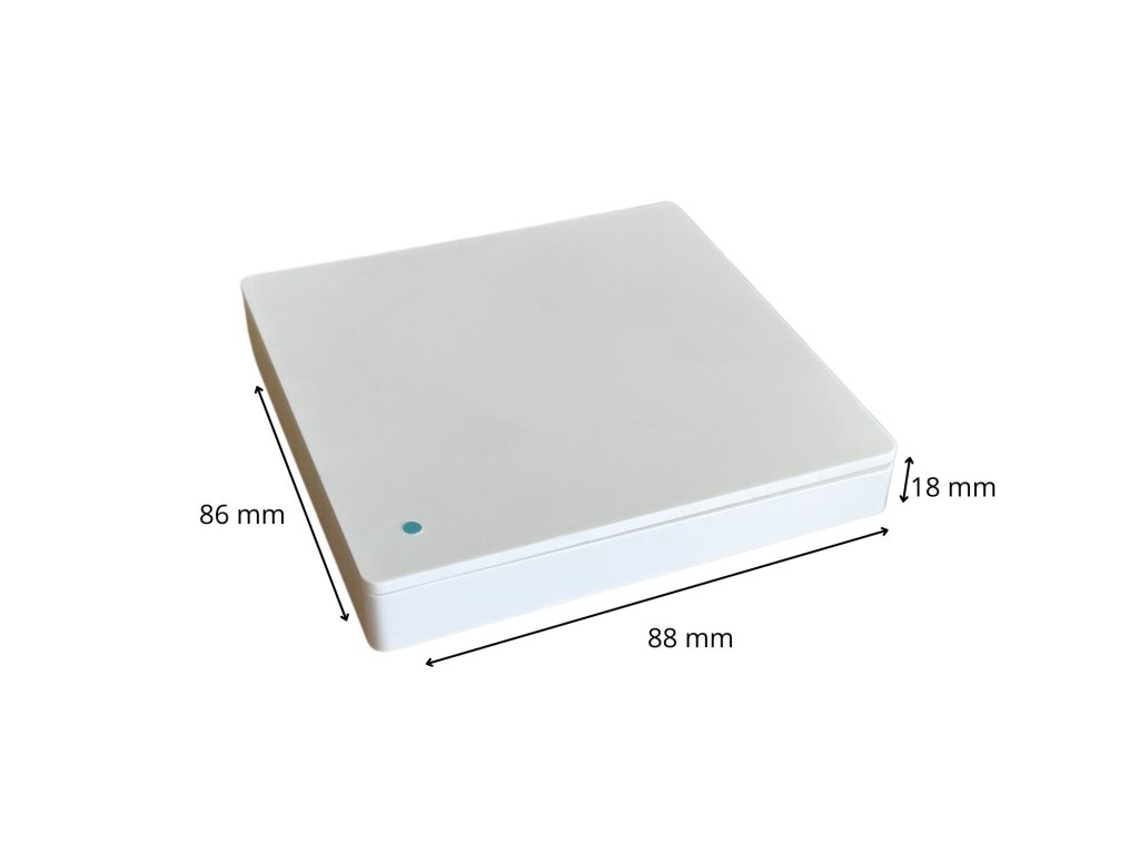- Kompaktní design: S rozměry pouhých 86x88x18 mm je vypínač nenápadný, ale účinný.