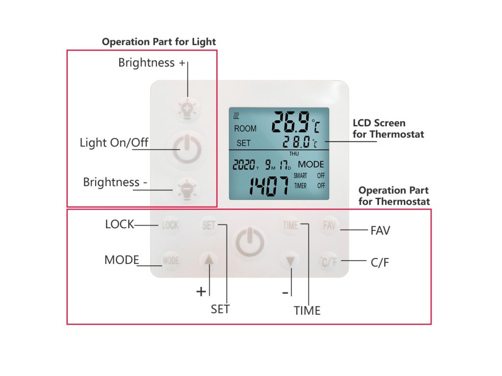 Tento model infračerveného topného panelu je vybavený moderním vestavěným termostatem, který nabízí jednoduché a pohodlné ovládání. Panel lze snadno nastavovat pomocí dálkového ovladače, který je součástí balení. Díky intuitivnímu rozhraní můžete snadno měnit teplotu, ovládat osvětlení a přizpůsobovat funkce panelu přesně podle vašich potřeb.