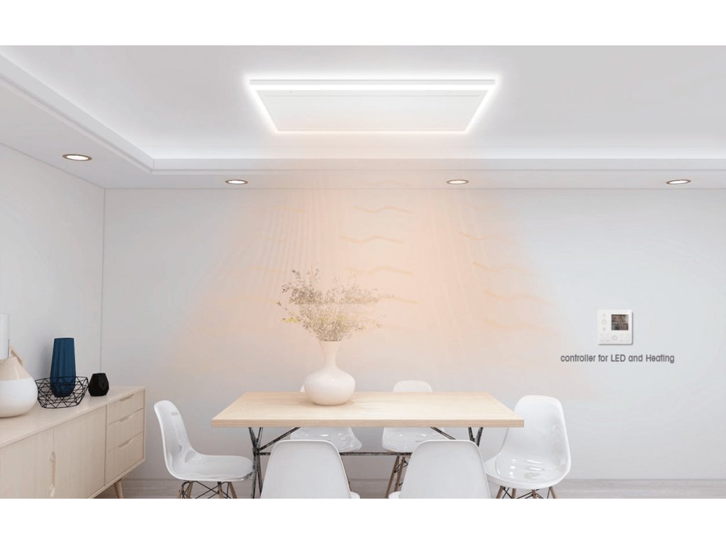 Infračervený panel CEILING LED 660W je moderní stropní topné zařízení, které spojuje špičkovou technologii vytápění s elegantním LED osvětlením. Díky možnosti dálkového ovládání lze snadno nastavovat teplotu, intenzitu i barvu světla, což umožňuje vytvořit ideální atmosféru v jakémkoliv prostoru. Panel je navržený tak, aby byl nenápadný, ale zároveň funkční, s diskrétní instalací na strop, která šetří místo a přináší elegantní řešení vytápění a osvětlení v jednom.