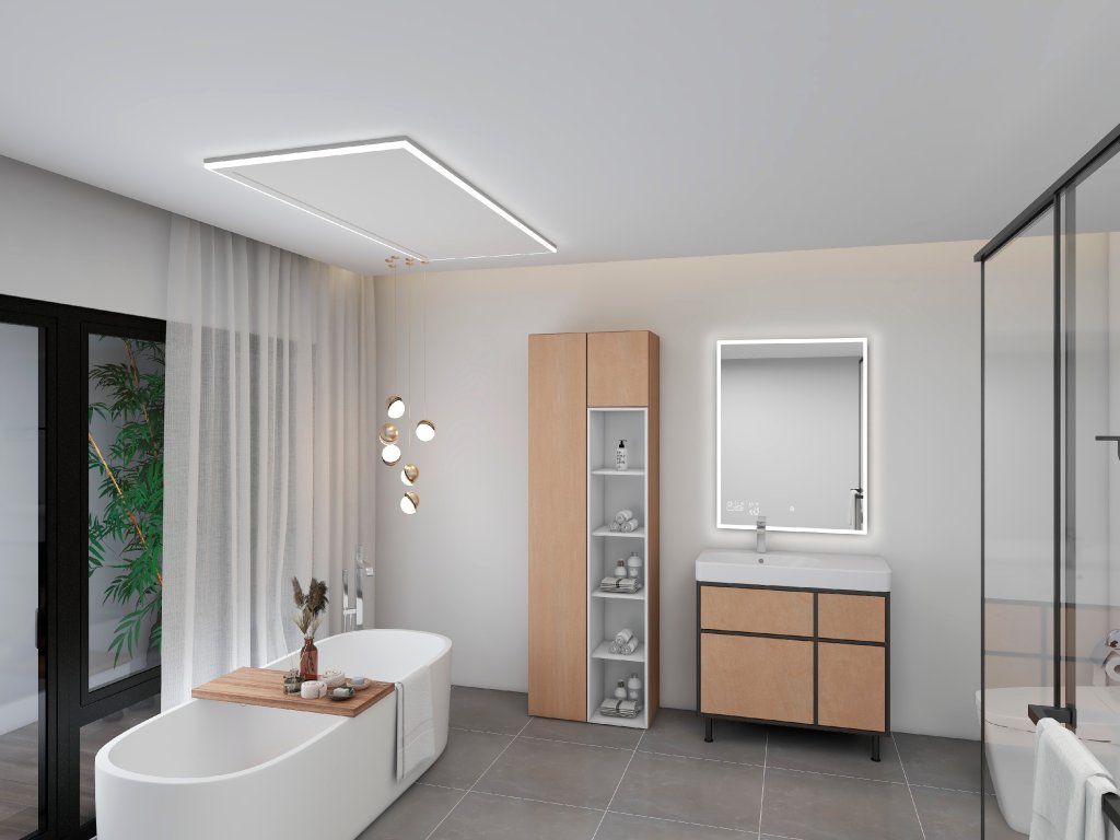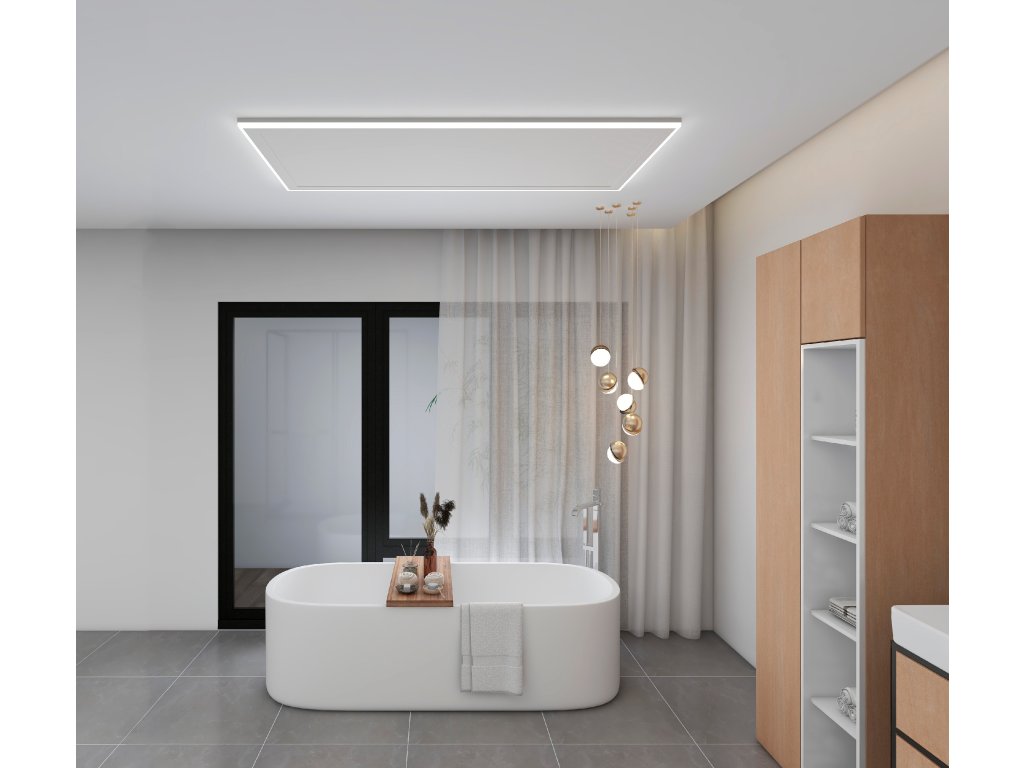 LED osvětlení integrované v panelu CEILING LED 660W přináší estetický a praktický prvek do každého interiéru. LED rám obsahuje 120 LED diod na metr a nabízí tři spektra osvětlení – teplé bílé světlo (3000K) pro relaxaci, studené bílé světlo (6000K) ideální pro práci, a neutrální bílé světlo (4500K), které se hodí pro běžné denní využití. Osvětlení je stmívatelné, což umožňuje přizpůsobit intenzitu světla vašim potřebám a vytvořit ideální atmosféru. Tato kombinace variabilního světelného spektra a možnosti regulace intenzity dělá z LED osvětlení nejen funkční prvek, ale také elegantní doplněk moderního interiéru.